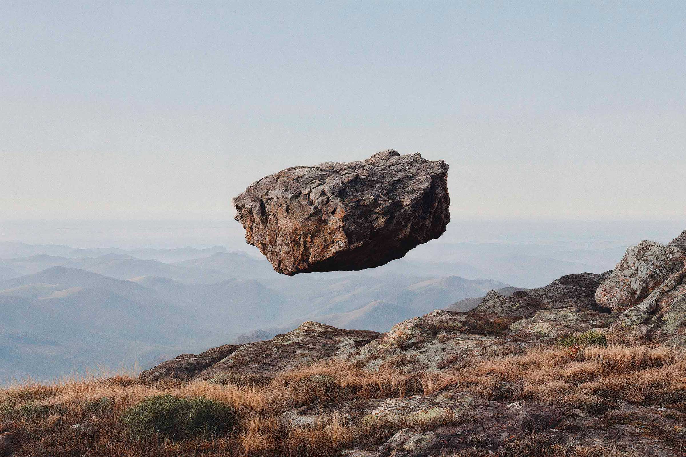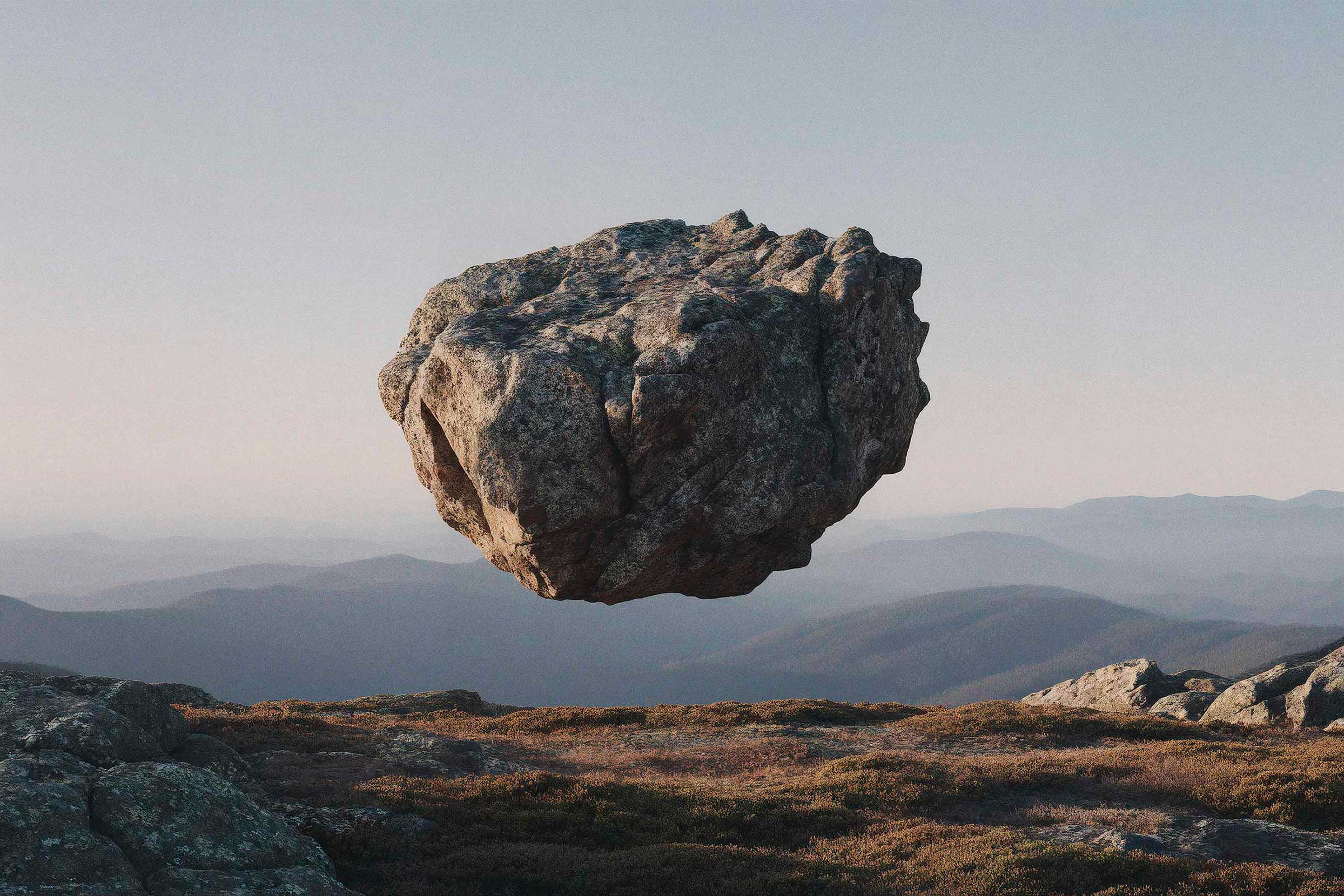 The boulders carry weight, and yet there’s a strange lightness to it. A calmness. It would be easy to make them move, turn it into motion. But they don’t need to. The idea holds in a single frame.