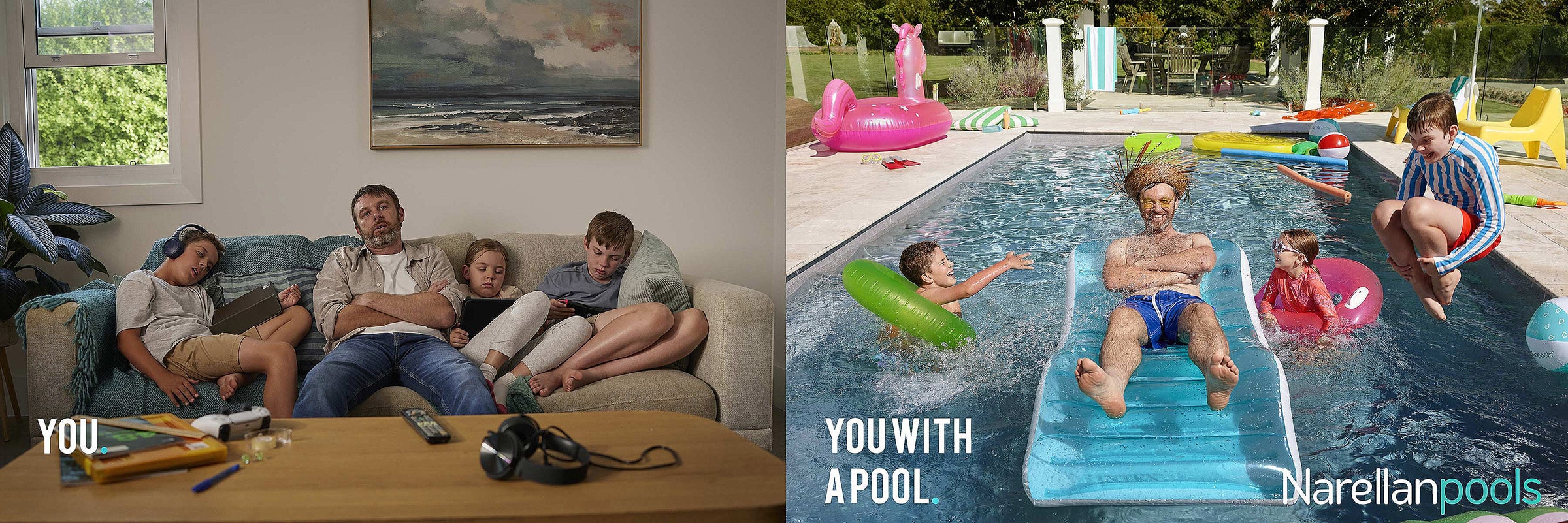 The idea was simple. A match cut between people who want a pool and people already enjoying one. Same moment, same behaviour, just a small shift in life, but actually quite a big one.