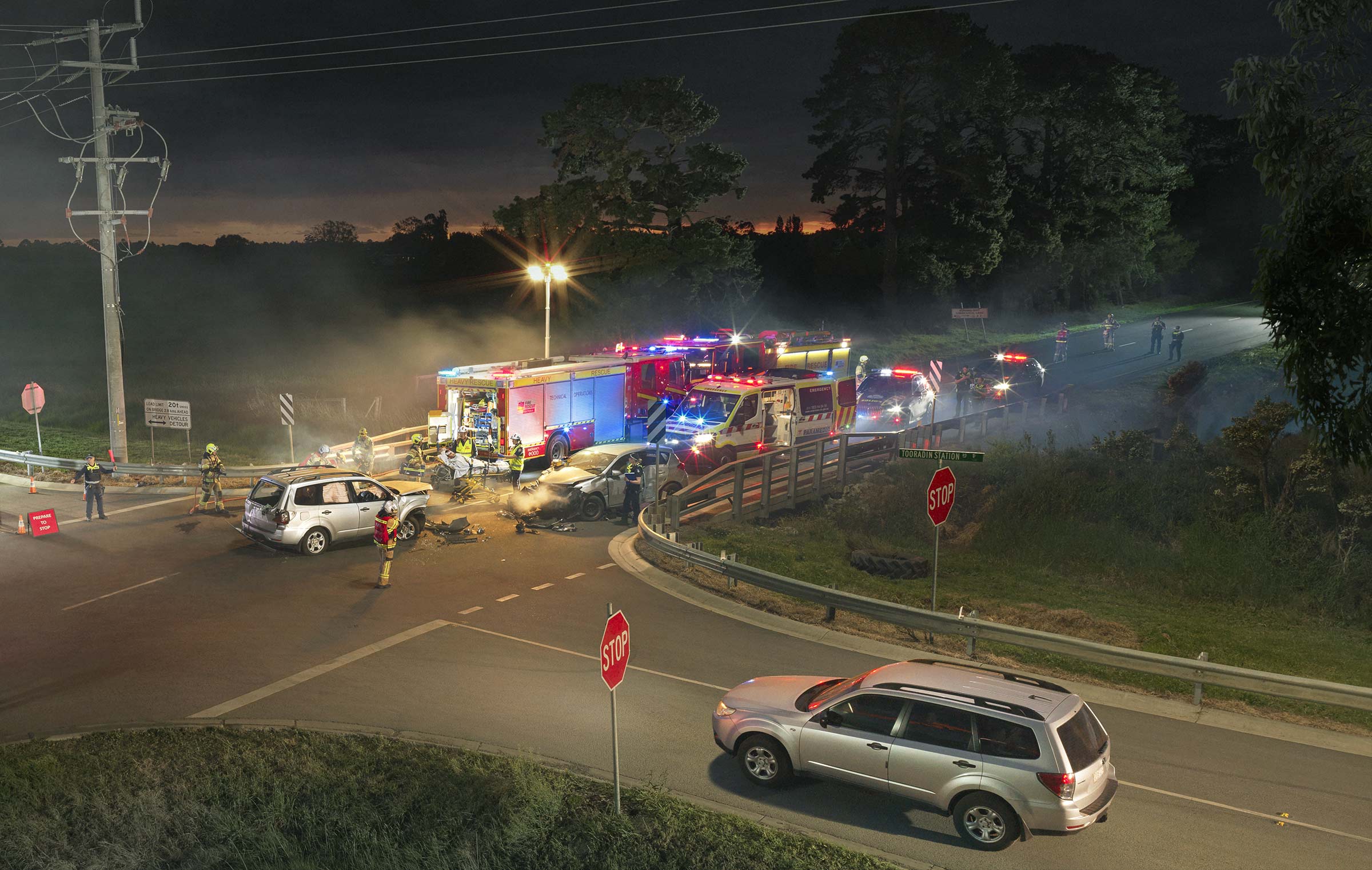 We shut down the road, worked through the night and built the entire scene in camera. Emergency services, vehicles, lighting, atmosphere, talent, all happening live. No shortcuts, no pretending.