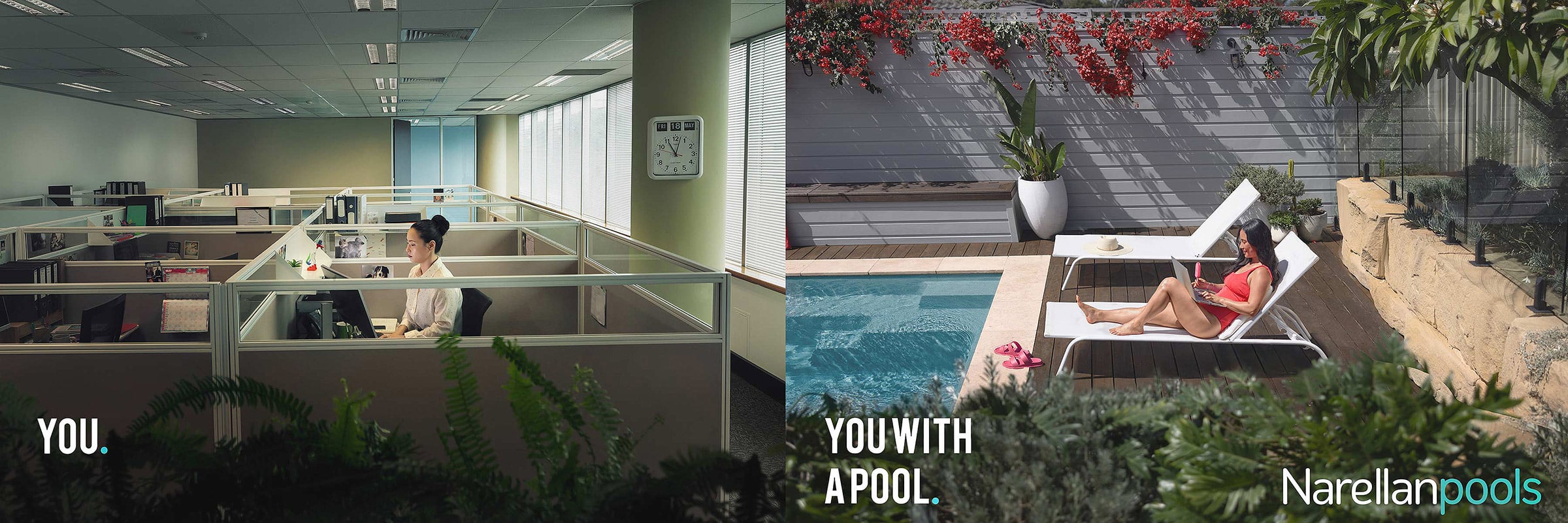 The idea was simple. A match cut between people who want a pool and people already enjoying one. Same moment, same behaviour, just a small shift in life, but actually quite a big one.